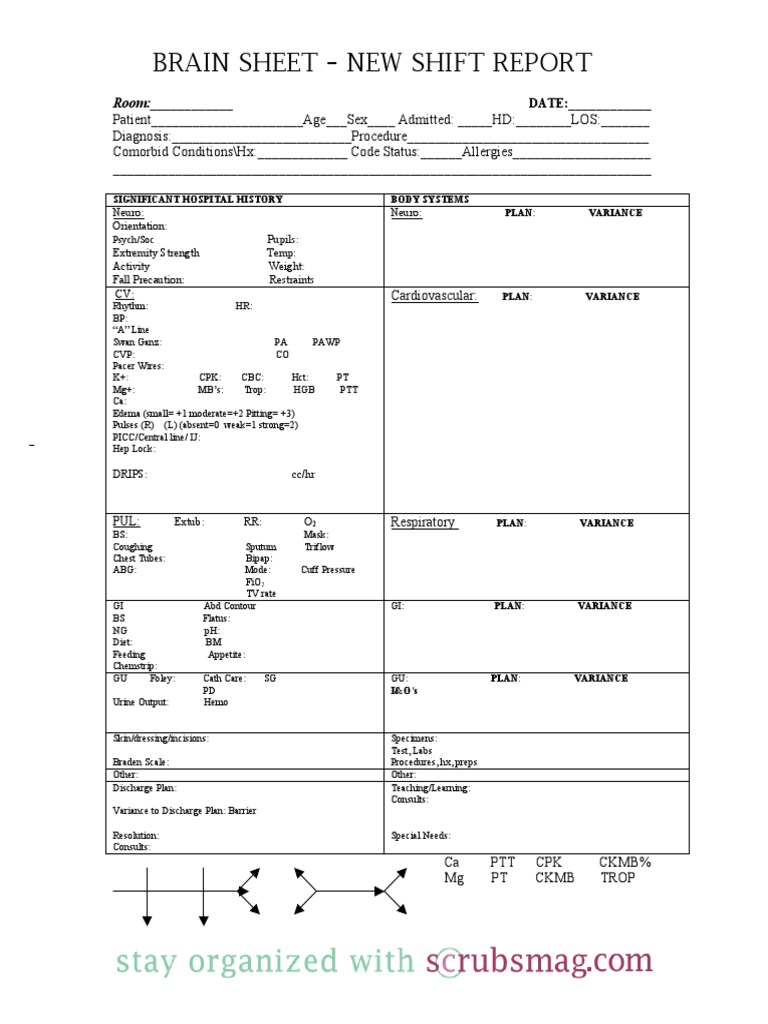 Tweet or dm a pic of it to me stat! 2) hour, day and night rotation. Download fill and print for. I remember when i was new, i spent a. Nursing shift report template and nursing handoff report template pdf. Add to cart brain nursing report sheet — 4 patients per page. 5) binder insert with mars. We asked you for your best brain sheets, and you delivered! Then i write down times. Stay organized on the floor with the nursing brain sheet pack from nrsng.com. The sheet is then used at the end of shift to give report to the oncoming nurse, making a good brain sheet key for patient safety and effective communication. Report sheet template nurse icu nurses nursing critical care telemetry. Nurse brain sheet_telemetry_unit_sbar by john knowles 9908 views.